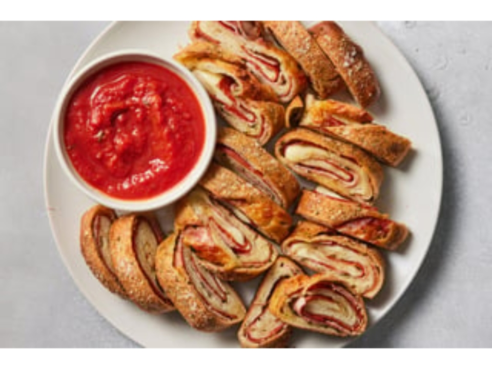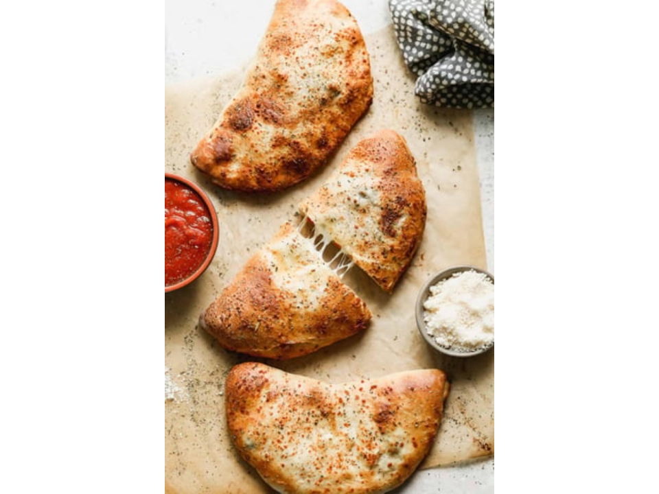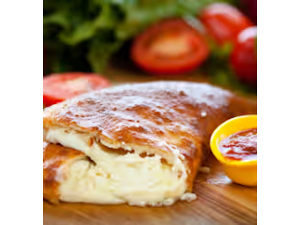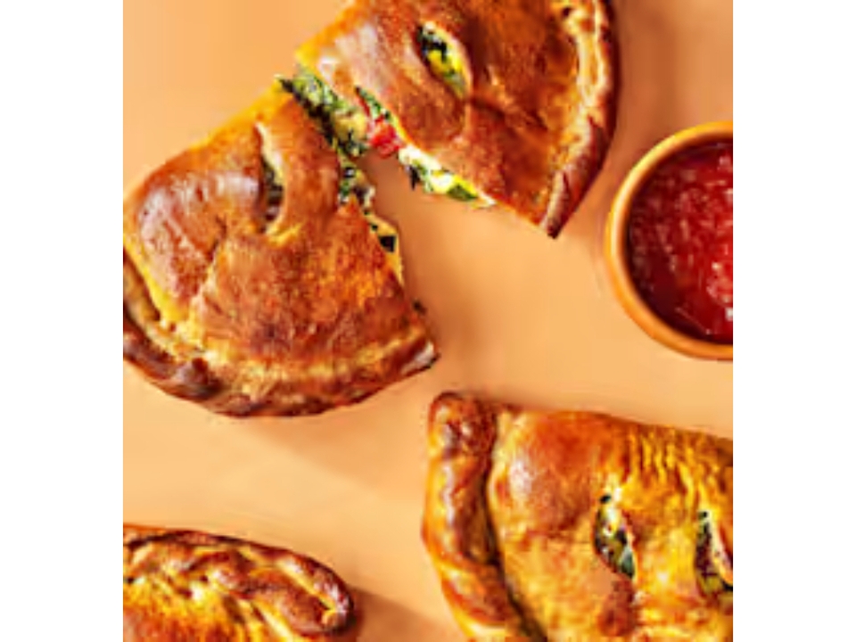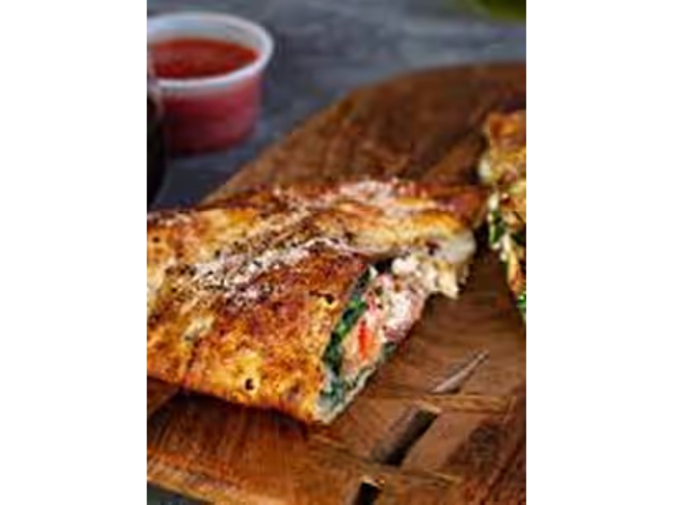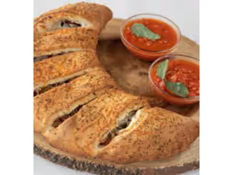 Pepperoni, sausage, mushrooms, green peppers, onions and mozzarella. Filled with meats, fresh vegetables. Baked just right and served with a side of marinara sauce.
