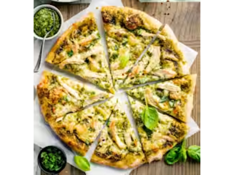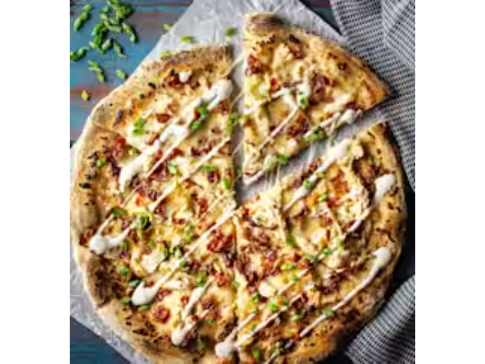 Mozzarella, cheddar, ranch sauce, grilled chicken, bacon