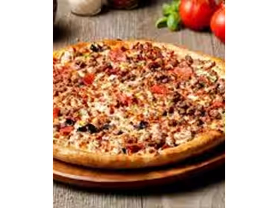 Canadian bacon, beef, onion, mushrooms, green peppers and black olives