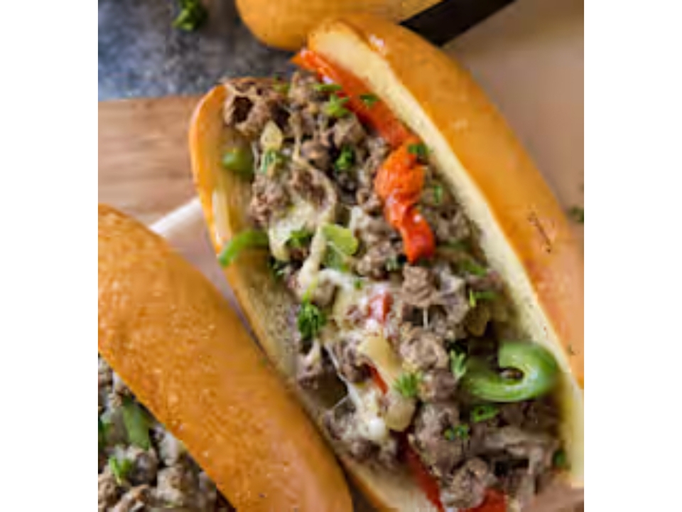 Philly steak, green peppers, onions