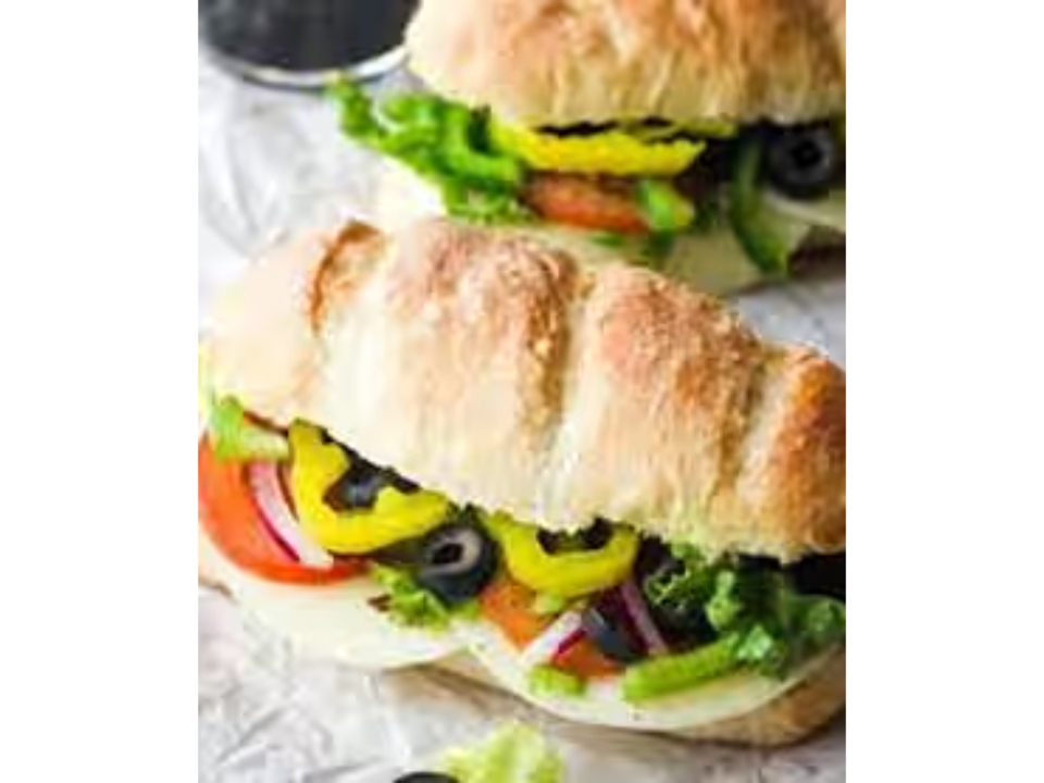 Lettuce, tomato, green peppers, onions, mushrooms, black and green olives
