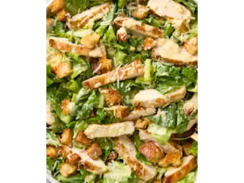 Fresh green lettuce mix with Parmesan cheese, grilled chicken and Caesar dressing