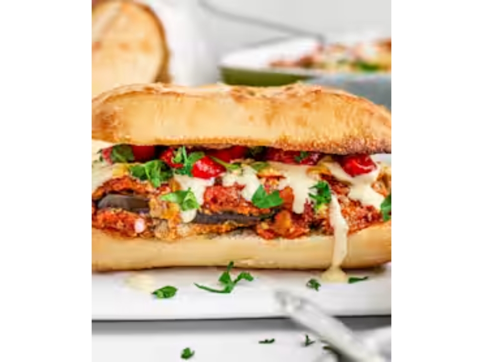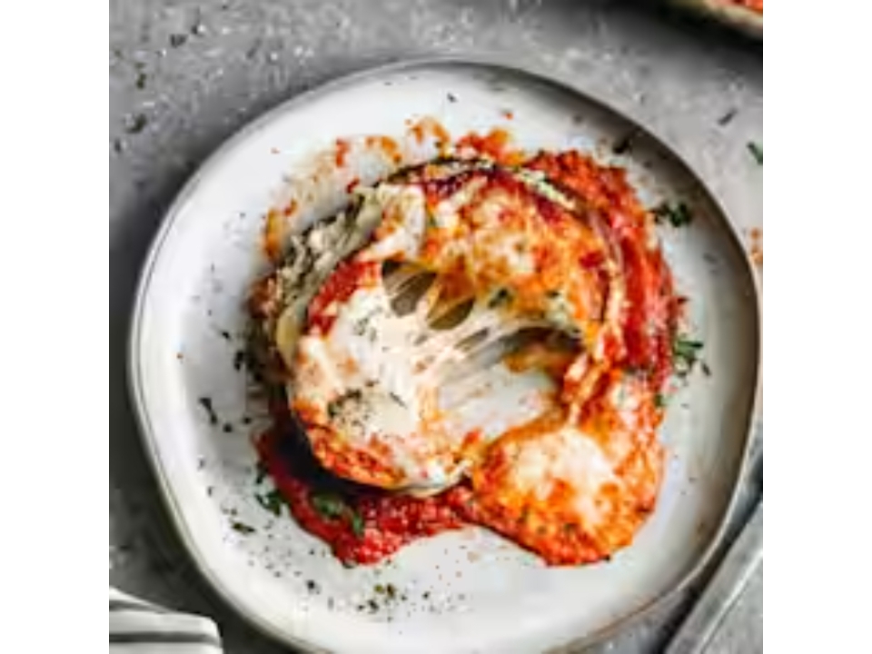 Eggplant Parmesan patties, marinara sauce and cheese