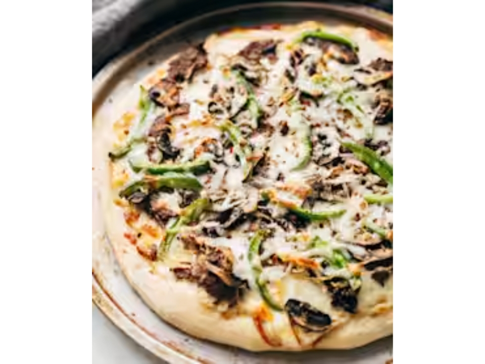 Philly steak, ranch sauce, sweet peppers, onions, mushrooms and mozzarella cheese