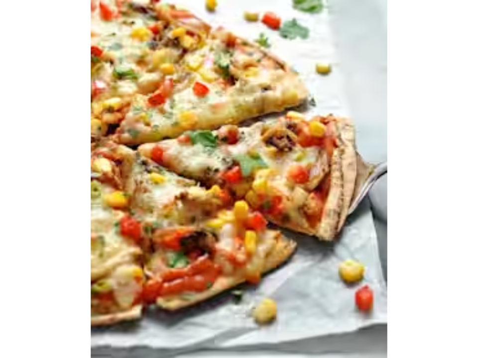Diced grilled chicken, ranch sauce, diced tomatoes, mozzarella and cheddar cheese