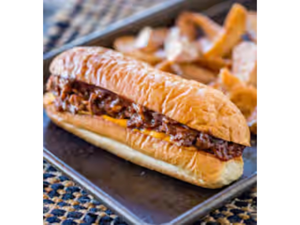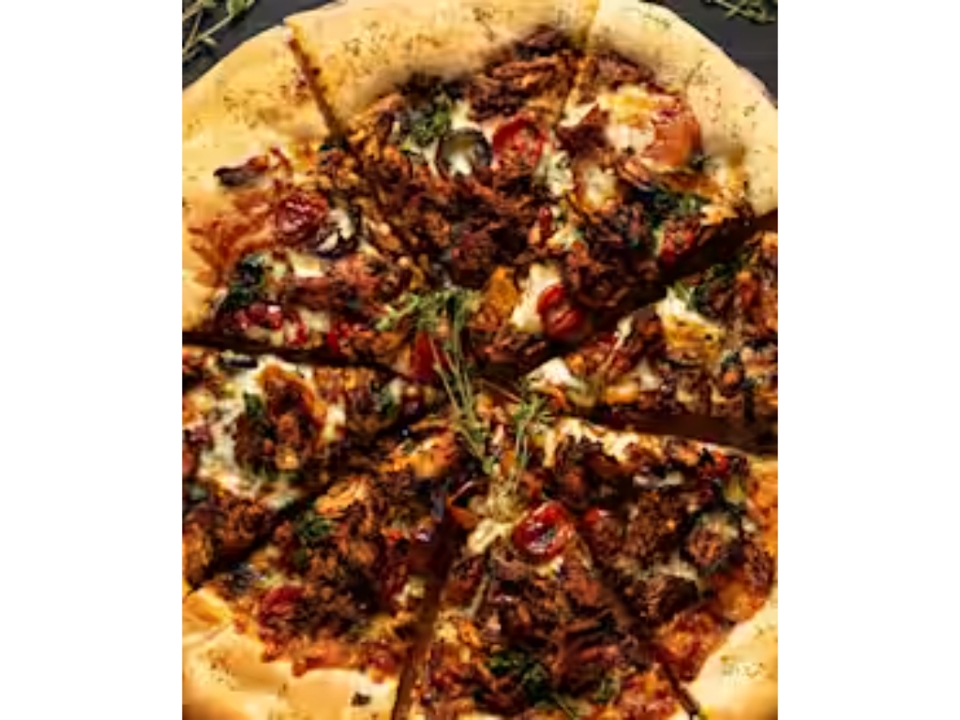 Chipotle sauce base, topped with beef topping, onions, tomatoes, jalapenos, and cheddar cheese