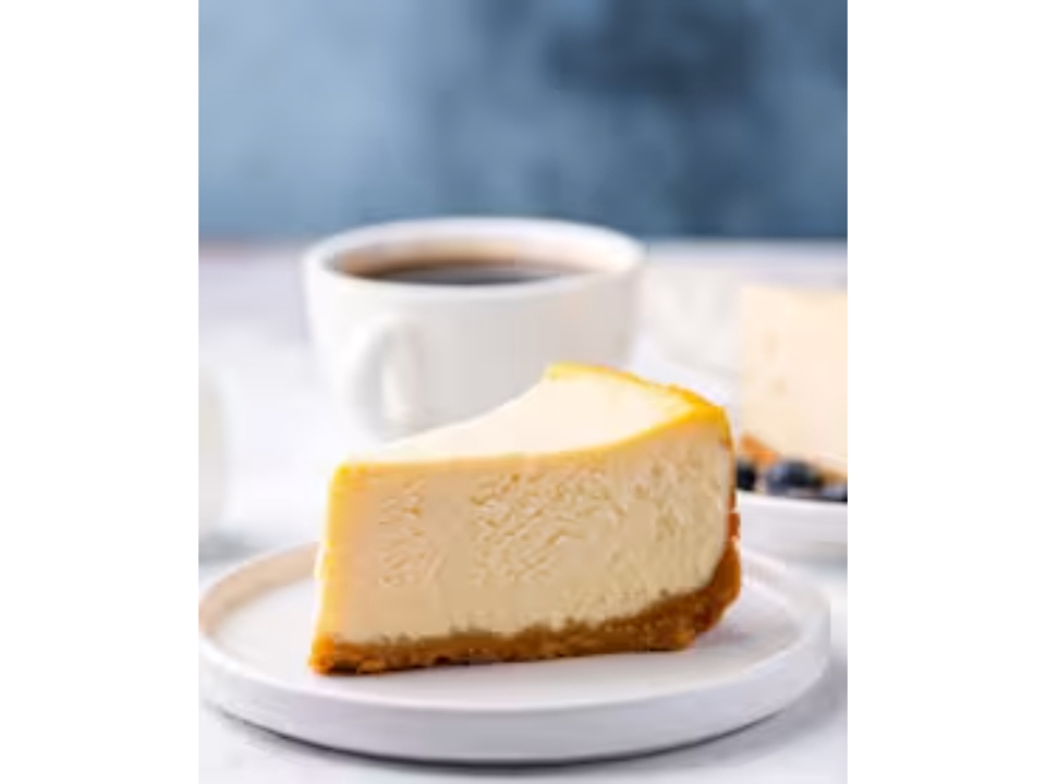 New York style cheesecake on top of a graham cracker crust. Served plain