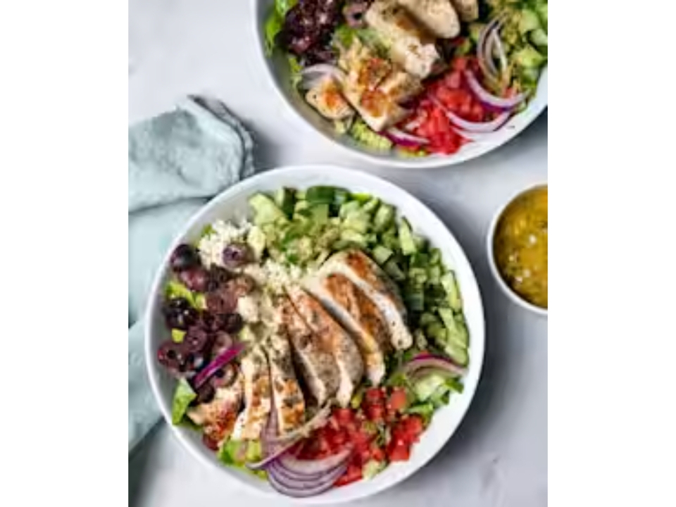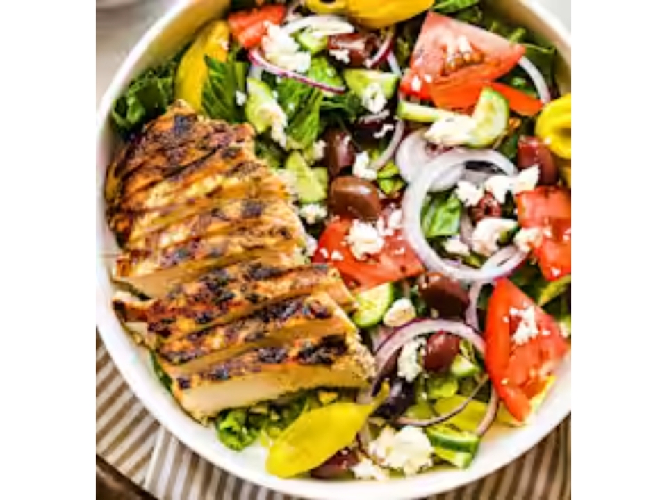 House salad with grilled chicken marinated with a combination of Greek, Italian, and middle eastern spices and topped with Parmesan cheese