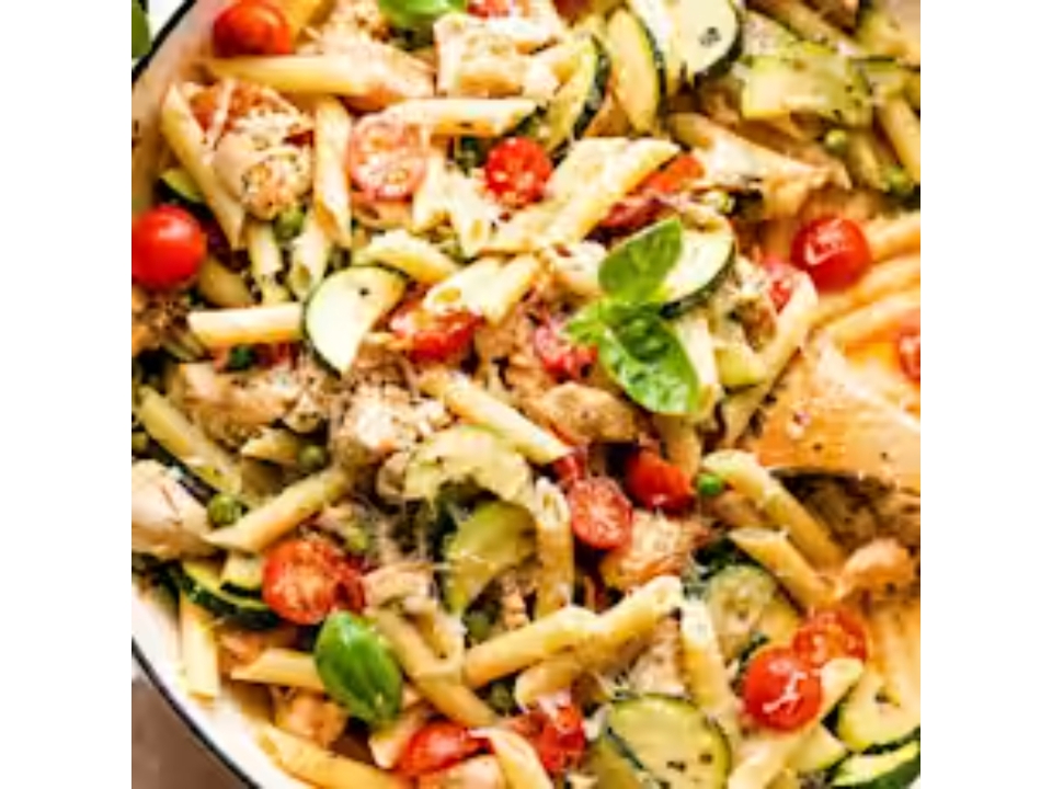 Olive oil, fresh garlic, spinach, broccoli, zucchini, tomato, onions and green peppers